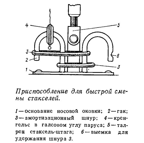 Располагая таким приспособлением, стаксель можно заменить, не затрачивая время на завинчивание скобы или болта.