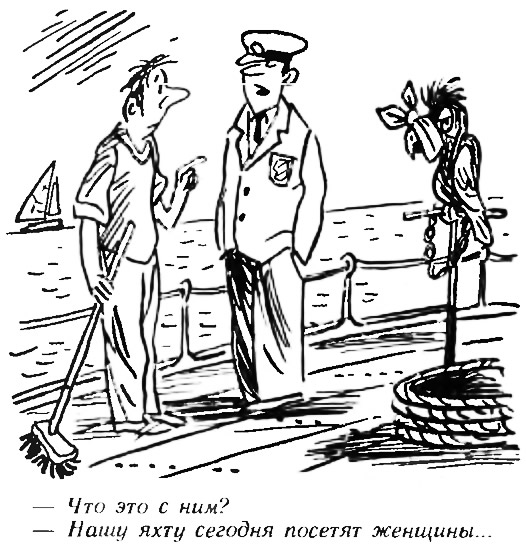 К сожалению, бывает у нас и так, что прекрасный вид элегантной «белокрылой» и «белоснежной» яхты обесценивается небрежным, а то и безобразным видом экипажа. Как писал Ю. А. Пантелеев, многие, собираясь в поход, надевают все самое старое, появляются на яхте небритые юноши в линялых костюмах, засаленных ватниках, грязных сапожищах, а «при такой внешности команды нечего и ждать порядка на судне»...