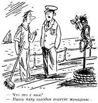 1. Для сравнения упомянем, что в капитальном «Руководстве для любителей парусного спорта» Г. В. Эша (1895 г.) существовала целая глава «Правила и обычаи, принятые на яхте (хороший тон)». Постороннему человеку, - пишет автор, известный петербургский яхтсмен и конструктор, — многие из обычаев и правил яхтенной жизни могут показаться крайне стеснительными и лишенными разумного основания, так же как любовь к чистоте и порядку, доведенная до пределов возможного, представляется чудачеством или придирками, не имеющими значения для дела. Однако так могут рассуждать только люди, не имевшие случая самолично убедиться, что эти правила и формы выработались именно самою жизнью на море — в стесненных условиях, без привычного берегового комфорта.