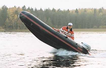 В повороте. Здесь наиболее достойно — небольшой внутренний крен и полное отсутствие боковых проскальзываний — проявили себя "Кайман" и "Командор", хотя последний иногда грешил подхватом воздуха гребным винтом при резкой смене курса (не исключено, что при разрешенном 25-сильном моторе этот эффект может и не проявиться). У "Фрегата-300", который поворачивает более плоско, "блинчиком", корма порой срывается в занос, да и усидеть в лодке из-за не столь выраженного крена сложней.