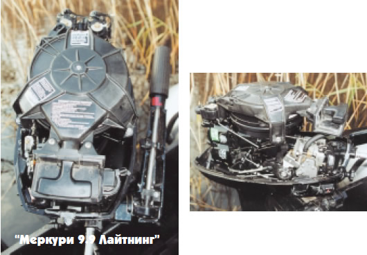 "Меркури" и "Тохатсу" выгодно отличаются тем, что в транспортировочном положении их румпели можно не только поднять наверх, но и перекинуть в обратную сторону — вдоль поддона, отчего общие габаритные размеры заметно уменьшаются, и моторы проще разместить в автомобиле.