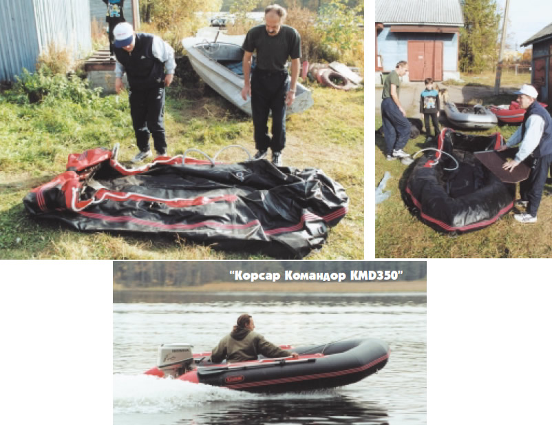 А вот "Корсар" — предприятие совместное, и основное производство фирмы располагается в Южной Корее, где и осуществляются наиболее ответственные операции, прежде всего такая, как выклейка баллонов и монтаж транца. Кроме того, опытный глаз наверняка отметит, что продукция "Корсара" очень напоминает известные корейские лодки "Феникс" ("Phoenix"), так что считать тот же предоставленный на редакционный тест "Командор KMD350" российским можно примерно в той же степени, что производимый в Калининграде-Кенигсберге автомобиль "БМВ" или елабужский "Шевроле-Блейзер".
