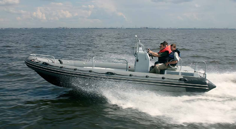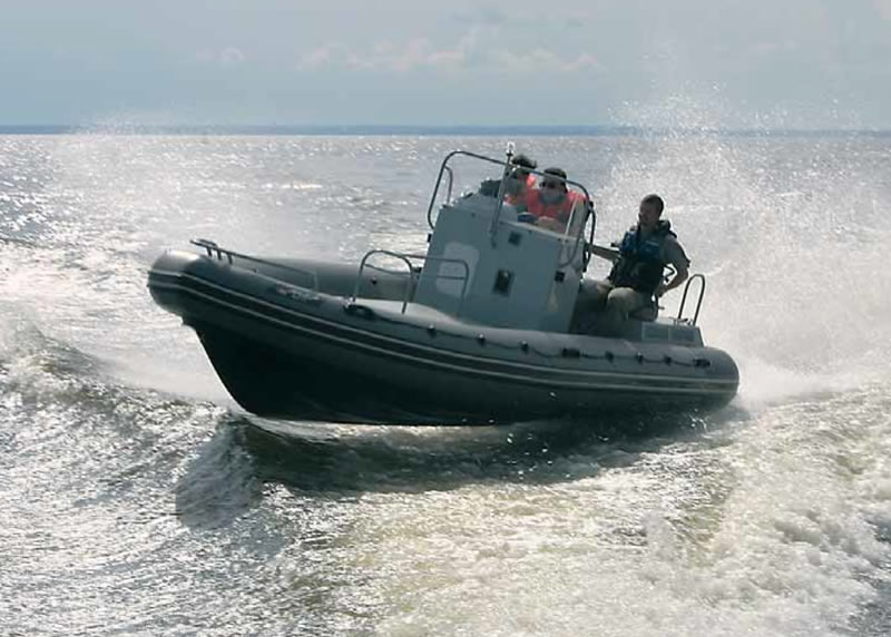 Военные давно поняли преимущества РИБов при решении определенных задач — прежде всего службами, осуществляющими контрольные и патрульные функции в прибрежной зоне. На вооружении пограничников, таможенников, береговой охраны многих стран стоит немало судов с надувным бортом. Во-первых, при относительно небольших размерениях они отличаются лучшей мореходностью по сравнению с традиционными жесткими корпусами, позволяя увереннее чувствовать себя на море в свежую погоду, а во-вторых, пневматический "воротник" выручает не только при подходе к остановленному для проверки или терпящему бедствие судну, играя роль своеобразного мягкого бампера или безразмерного кранца, но и в более серьезных "боевых" ситуациях — если неприятелю, к примеру, вздумается пойти на таран. (Кстати, как рассказывал нам в свое время легендарный итальянский конструктор и гонщик Фабио Буцци, предоставивший для редакционных испытаний патрульный перехватчик "FB RIB 33", нарушители всех мастей — контрабандисты, перевозчики нелегальных эмигрантов и те же пираты — тоже предпочитают РИБы).