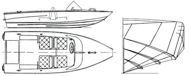 Появление в далеком 1969 г. чертежей этой маленькой (4.2 м), но довольно мореходной килеватой лодки разом сделало устаревшими сотни тысяч серийных плоскодонок.