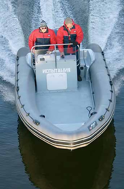 Скоростной мореходный РИБ, созданный на основе удачной и проверенной концепции обводов - наверняка именно этот фактор и оказался решающим при выборе военных. Ходовые качества удачно дополнены «универсальной» компоновкой, позволяющей использовать лодку не только «по делу» (для рыбалки, обслуживания соревнований и тренировок), но для прогулок и вообще отдыха на воде. Вместительный топливный бак и высокая скорость дают возможность совершать «путешествия выходного дня» по достаточно протяженным маршрутам, а мореходность -удаляться от берега на «серьезных» водоемах. Что же касается самого первого протестированного варианта, то и он будет наверняка востребован «частниками» - теми, для кого простор на борту важнее удобных сидений. Тем более, что объемы серийного выпуска по сравнению с теми же надувнушками относительно невелики, и при постройке лодки под заказ возможны практически любые варианты исполнения интерьера.