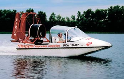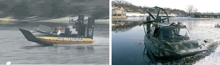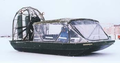 Относить ли к импорту продукцию украинской фирмы НПП «Европа-Аэро», созданной в 1991 г. К. В. Петровым? Ну, раз уж «Европа». Для МЧС Украины здесь построено несколько десятков аэроглиссеров по ряду проектов с разными корпусами. Козырек спереди предохраняет корпус катера при движении в камышах. Это очень легкие аппараты небольшой вместимости, с помощью которых, тем не менее, проведено много спасательных операций и в летних, и в зимних условиях.