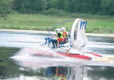 В умелых руках такие катера совершают чудеса. Возьмем, к примеру, богатый опыт эксплуатации «Гепардов» или работу английских АСВП «River Rover» в качестве «скорой помощи» на реках Непала. Но ведь нашему человеку захочется проехать по шоссе или просто поперек склона, а на уклонах даже самые совершенные аппараты с «настоящей» сегментной юбкой и струйными рулями радостно катятся вниз, как мыло по банной доске. Чуть менее своенравны катера и аппараты с баллонным ограждением, но такие действия, как и непомерные скорости при проблематичной управляемости, чреваты навалами и прочими бедами похуже.