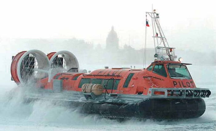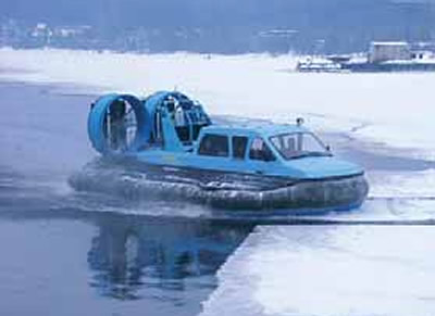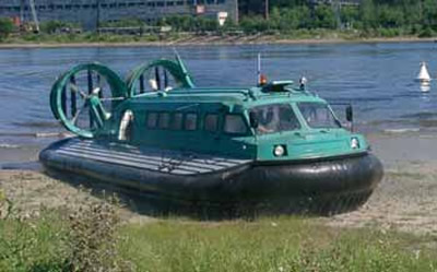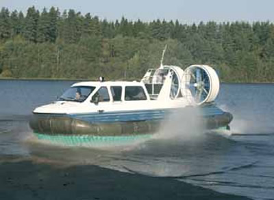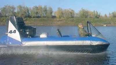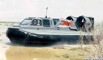 Выпускают их разные производители. Самые, пожалуй, известные на сегодня АСВП - аппараты «Хивус» фирмы С. Дербенева «Аэроход». Использованы скеговая схема (только скегов - три) и два вертикально расположенных баллона. Выпускаются серийно 3-, 4-, 6-, и 10-местные; младший - с «Rotax», старшие - с различными вариантами двигателей, от отечественных автомобильных «ВАЗ-21213» (85 л.с.) до «ЗМЗ-406» (150 л.с.). Новинку с дизелем я пока не видел, но факт появления радует. Подача воздуха осуществляется двумя палубными осевыми вентиляторами с отдельной трансмиссией при одном двигателе.