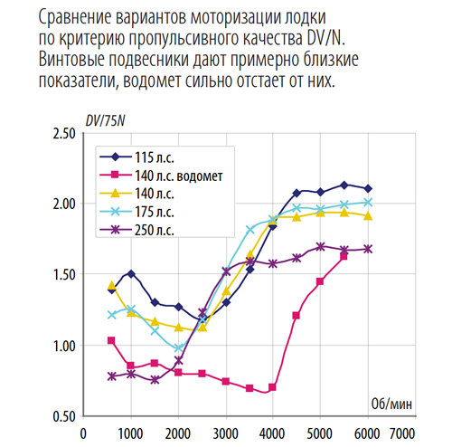 Сравнение вариантов моторизации лодки по критерию пропульсивного качества DV/N