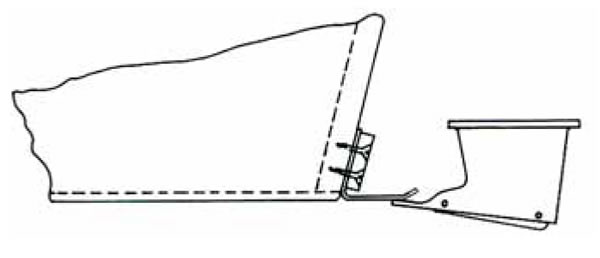 Враг водомета — воздух. При его попадании в водозаборник мотор резко повышает обороты и теряет тягу. Затем, когда вода снова попадает в водозаборник, следует рывок. Для уменьшения вероятности таких рывков надо правильно устанавливать подвесной водомет по высоте и убирать все мешающие нормальному потоку воды выступающие части киля у транца. Иногда применяют ограничивающие попадание воздуха с боков пластины, привариваемые или крепящиеся на шпильках к водозаборнику мотора. Основа правильной установки мотора — подбор такой высоты транца лодки, чтобы носок водозаборника установленного вертикально мотора как раз находился на линии продолжения киля лодки. Если при этом прорывы воздуха все же продолжаются, можно опустить мотор еще чуть ниже, хотя при этом возрастут брызгообразование и сопротивление подводной части мотора. Также полезно поставить на транце брызгоотбой-ник из толстой резины или мягкого пластика, слегка заходящий на носок водозаборника (рис. 10). В идеале очень удобны специальные транцевые крепления для подвесных моторов, позволяющие менять высоту установки мотора, даже не снимая его с лодки. Такие крепления разных модификаций, в том числе с дистанционным электроприводом, продаются сейчас по специализированным лодочным каталогам. В этом случае снимается проблема наращивания высоты транца и при желании всегда можно снять водомет, снова установить редуктор на прежнюю высоту и продолжать ходить с винтом.