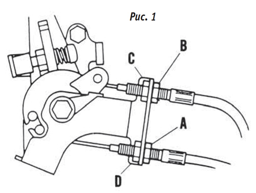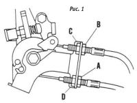4. Проверьте работу рукоятки газа и настройте винты С и D до тех пор, пока не появится легкий люфт при повороте рукоятки газа (рис. 2).