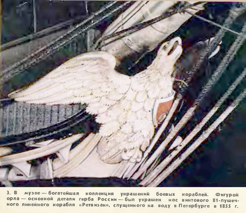 Многочисленные модели и карты, архивные документы и фотоснимки, красочно оформленные стенды и картины видных художников-маринистов дополняют рассказ о развитии и боевом пути русского флота, характеризуют деятельность флотоводцев ф. Ф. Ушакова и Д. Н. Сенявина, П. С. Нахимова и С. О. Макарова.