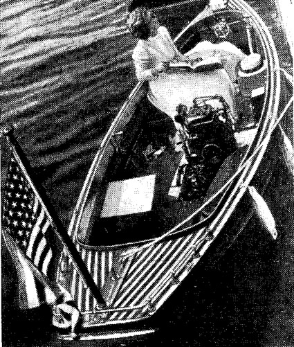 В Америке, да и не только в Америке, вошли в моду старинные автомобили, поездки в каретах, запряженных лошадьми, а теперь и старые лодки. Показанный на снимке катер был спущен на воду в 1887 году. Супруги Уэллс подобрали его в. прошлом году на свалке, где он мирно ожидал конца — ему угрожала гибель в печке сторожа. Катер восстановили, специально для него приобрели старинный бензиновый двигатель.