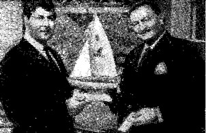 В 37 номере сборника читателям был представлен популярный английский швертбот «Миррор Динги». Весной прошлого года П. Робертс — директор газетной корпорации, субсидировавшей проект и постройку первого швертбота десять лет назад, вручил известному английскому яхтсмену и путешественнику Чэй Блитту сорокатысячный «Миррор Динги». На снимке, воспроизводимом нами из журнала «Yachts and Yachting», запечатлен торжественный момент вручения точной масштабной копии швертбота — сам швертбот в «Кафе Ройял» не поместился.