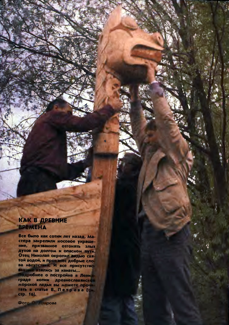 Событие состоялось на пороге лета в Ленинграде, в яхт-клубе Морского технического университета. Строилась ладья в полукустарной клубной мастерской двумя мастерами В. Андреевым и Б. Мордовским довольно быстро как часто бывает, поджимали сроки.
