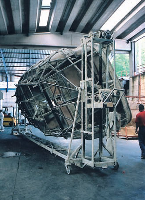 На первый взгляд, само по себе стеклопластиковое производство «Gobbi» выглядит примерно так же, как и у множества других компаний, где до сих пор довелось побывать. Уставленные матрицами ангары, горы стекломата (стеклоткань здесь используют только для наиболее ответственных участков корпуса), характерный стирольный запах... Несмотря на хорошую защиту труда (вытяжки, респираторы, спецкостюмы), на ручной формовке корпусов и надстроек задействованы в основном чернокожие иммигранты. Правда, есть и серьезное «но»: такая ответственная операция, как нанесение гелькоута, от которой зависит не только внешний вид, но и долговечность будущего судна, возложена не на человеческие руки, а на робота.