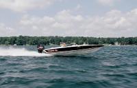 «28-й» (8.4 м) можно разогнать до 148 км/ч (около 92 миль/ч) двумя ПМ по 250 л.с., установленными на прикрепленном болтами литом алюминиевом кронштейне, по совместительству выполняющем роль скромной купальной платформы, и тянет он на 190 тыс. долл. Здесь надо дать пояснение: дело в том, что «21-й» создавался на базе довольно известного гоночного катера «Challenger», сотворенного Джорджем Линдером в середине 70-х гг. ХХ в., а «28-й» целиком и полностью - детище Вейгла, хотя их кровное родство видно невооруженным глазом. Сконструирован же «28-й» под стационарный двигатель с угловой колонкой, а для свободы выбора ПМ («Mercury», «Yamaha» и «Evinrude» - двухтактные 250-300сильные, а также четырехтактники) и был придуман кронштейн. Так вот, к примеру, со стационарным «Mercruiser-525» «28-й» будет развивать скорость около 156 км/ч и стоить 172 тыс. долл. А в варианте с 1100-сильным «Мерком» катер мог бы превысить рубеж в 190 км/ч (120 миль/ч). В этом случае цена резко скакнет ввысь, так как это двигатель гоночный со 100-часовым ресурсом до капитального ремонта.