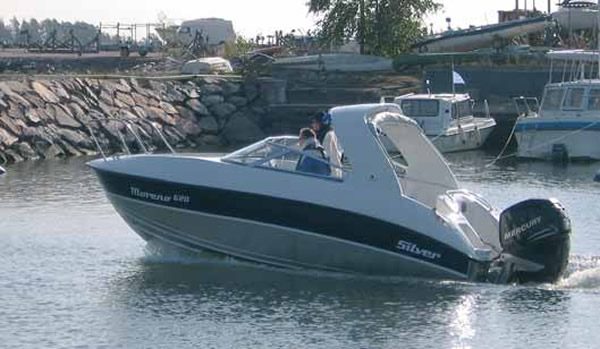 Журналистам в акватории Хельсинкского яхт-клуба представили две новые модели в ряду «Silver» - уже хорошо известный у нас «Silver Eagle WA650» (по той простой причине, что его пластиковые секции были разработаны в России) и принципиально новый по концепции «Silver Moreno 620». Последняя модель держалась в секрете вплоть до этой презентации. «Мурена» имеет алюминиевый корпус с совершенно другими характеристиками, чем прошлые разработки, а по компоновке и составу оборудования она продолжает модную сейчас у финнов тенденцию строить лодки для солнечных южных регионов. С 200-сильным «Mercury Verado» новая лодка показала прекрасные ходовые качества.