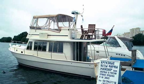 «Московский салон яхт и катеров» был представлен более помпезно, но, увы, до прошлогодней выставки того же устроителя экспозиция не дотянула. Часть ее размещалась под крышей, а часть на воде (у причалов «Shore House»). Наземная ее доля занимала лишь небольшой выставочный зал, что вызывало у многих посетителей определенное недоумение: «А где же основная часть экспозиции?». Увы, это она и была - все малочисленные экспоненты свободно разместились в одном весьма скромном зале. А если из их общего числа отнять «непрофильные стенды» (мотоциклов, джакузи и автодомов «Hymer»), то кроме десятка моделей катеров, журнальных изданий да нескольких дилеров известных яхтенных фирм больше ничего и не наблюдалось. Не было ни надувных лодок или РИБов, ни подвесных или стационарных двигателей, ни гребных лодок или швертботов, ни снастей или дельных вещей, ни лаков и красок или материалов по уходу за судном, ни страховщиков или чартерных компаний. Практически отсутствовали и суда отечественных производителей. Наглядно подтвердился факт оторванности московских выставок от практической яхтенной жизни: мало того, сегодня (если судить по выставке) покупателю предлагается моторная или парусная яхта «сама по себе», в отрыве от всего того комплекса товаров и услуг, который безотрывно сопровождает цивилизованную эксплуатацию дорогой (да и не только дорогой) лодки. Неудивительно, что нарекания даже обеспеченных посетителей выставки на качество работы отечественных «сервисменов» звучали постоянно. Собственно говоря, способствует подобному представлению яхт на выставках и сложившаяся «московская практика» их эксплуатации: когда большие, стоящие многие миллионы суда используются исключительно как покачивающиеся у причалов переговорные комнаты.