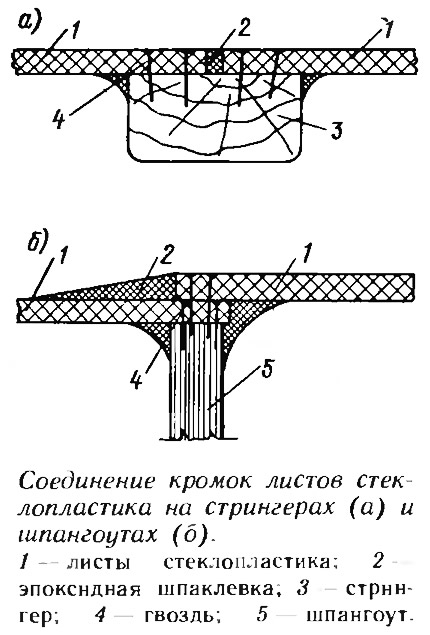 | Название изображения: | Соединение кромок листов стеклопластика на стрингерах и шпангоутах |
