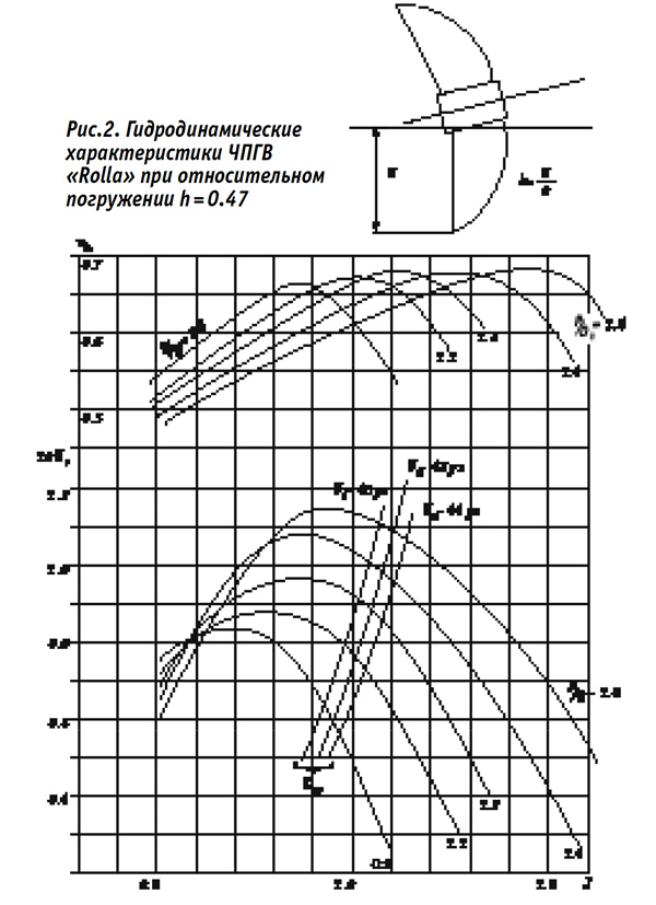Рис. 2. Гидродинамические характеристики ЧПГВ «Rolla» при относительном погружении h=0.47