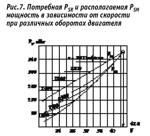 С рис. 5 при n =1900 об/мин находим: hR =0.58, PSR = 100 кВт, hM = 1.0, TEM = 8.3 кН; при n = 2500 об/мин - hR = 0.42, PSR = 140 кВт, hM = 0.55, TEM = 8.0 кН.