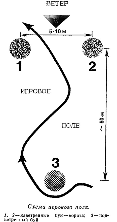 - 1. После гола судья подает сигнал для передачи мяча. В этом случае игрок команды, забившей гол, берет мяч из ворот, кратчайшим путем идет к подветренному бую, откуда игра начинается снова.