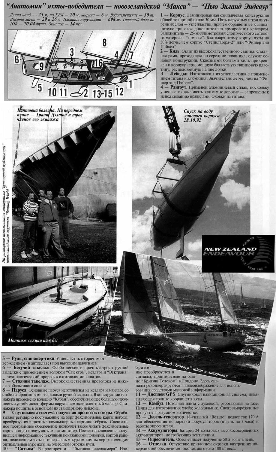 Стоит особо отметить мощный задел новозеландцев. Совместно с японскими партнерами они сумели подготовить даже не одну, а две яхты, причем сделали это с блеском (об этом говорят результаты гонок, проведенных незадолго до WRWR 93-94). Оба парусника сразу заняли видные места в списке фаворитов.