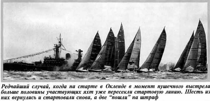 Азартный старт в Окленде обещал интересную борьбу для рвущихся в бой экипажей на всей далеко не простой 6000-мильной трассе. А на самом этом старте напряжение было так велико, что больше половины яхт-участниц (8 из 14)... не удержались от фальстарта (редчайший случай!). По правилам яхты должны были вернуться и стартовать снова, но шкиперы "Бруксфилд" и "Хейнекен" без колебаний предпочли быть оштрафованными 17 минутами дополнительного времени на финише. Тем более что в предстартовой зоне в это время уже находились тысячи мешавших повторному маневру лодок с любопытными гражданами Окленда.