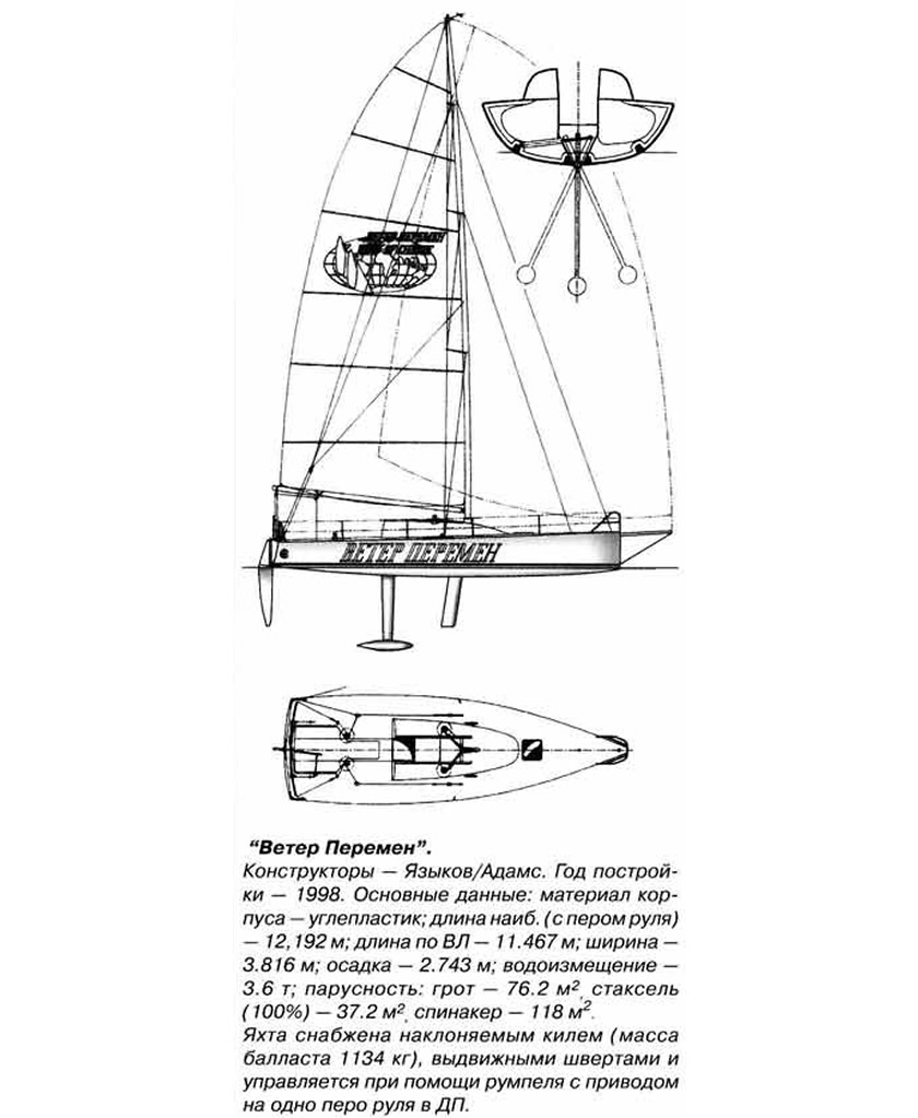 Выбирая тип парусного вооружения и площадь парусов для своих яхт, Языков и Адамс прежде всего проанализировали известные для основных типов яхт соотношения площади парусности к водоизмещению и получили первые примерные ориентиры. Далее последовал анализ маршрута предстоящей гонки. В двух словах он выглядел так: гонка пройдет через "ревущие сороковые", "воющие пятидесятые" и "зашкалит" за шестидесятые градусы южной широты при огибании мыса Горн.