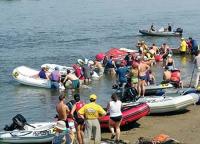 На следующий день просыпаюсь» рано: на часах - 6.00. С удивлением обнаруживаю, что даже после почти бессонной ночи некоторые лодки уже на воде. Погода, несмотря на все прогнозы, просто «шепчет», вода - как парное молоко. Лагерь потихоньку оживает. В котелках закипает вода, значит, будет чай, поревывают моторы. По программе на второй день запланированы командные гонки. Участники их уже поняли, что лучше подготовиться заранее, и начинают тренировки: именно здесь, в отличие от личных заездов, особо важны сплоченность и взаимопонимание всех членов команды. Старт и, как обычно, упорнейшая борьба.
