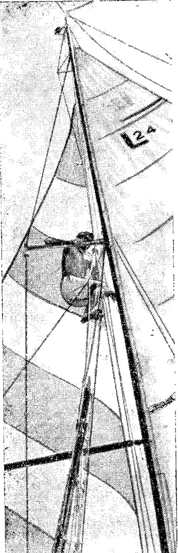 Не знаю, как мне удалось схватиться за привязанный к корме и пропущенный через релинг конец. Я белкой вскарабкался обратно на палубу. Вода была довольно теплой, но наверху холодный ветер с дождем заставил меня попрыгать. Было уже около четырех, когда мне удалось, наконец, вытащить мачту и парусину на палубу. Напялил на себя все, что можно, забрался на койку под одеяло, но все равно продолжал лязгать зубами.