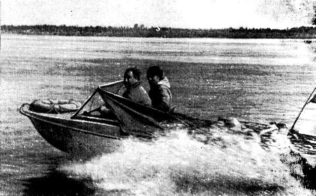 В плавание вышли на нашем испытанном «Крыме-М» под двумя «Вихрями-М». Готовясь к предстоящему походу, мы снова переоборудовали свою лодку. Переделали подмоторную нишу: теперь она стала самоотливной, а перед ней удобно размещается 120-литровый бензобак. Однорычажное управление заменили более надежным двухрычажным типа «Москва». Установили откидывающиеся сиденья, которые легко превратить в спальные места. В результате лодка стала более комфортабельной, что немаловажно при длительных походах. Для улучшения защиты от комаров тент сделали более герметичным.