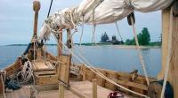 Строитель ладьи оказался не на высоте: весла получились слишком тяжелыми, а брать рифы на парусе вообще оказалось проблемой, так что наивная мечта весь поход проделать исключительно под парусом и на веслах, кажется, так и останется мечтой. Если, конечно, решительно не заменить весла. Впрочем, ведь и мы сами не из той эпохи умелых гребцов, которую пытаемся представить жадным до картинок из прошлого телевизионщикам.
