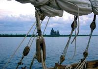 Между тем работники канала сформировали караван судов, идущих на юг, и вечером 9 июня мы начали прохождение сразу шести шлюзов, поднимаясь на высоту Шекснинского водохранилища - на 80 м. На следующий день мы уже ошвартовались у причала старинного села Горица. Отсюда автобусы доставляют любителей старины в знаменитый Кирилло-Белозерский мужской монастырь, да и в самом этом селе есть своя достопримечательность - Горицкий женский монастырь. На его территории есть известный источник родниковой воды, иначе как святой не называемой. Пополнить ею наши цистерны мы, естественно, не преминули.